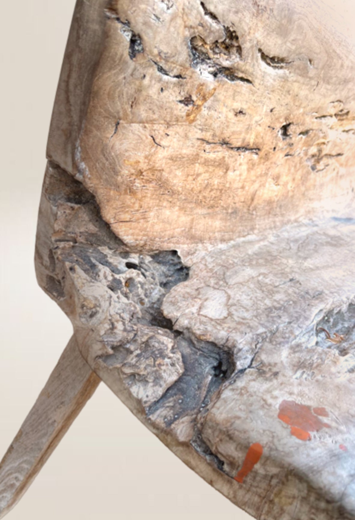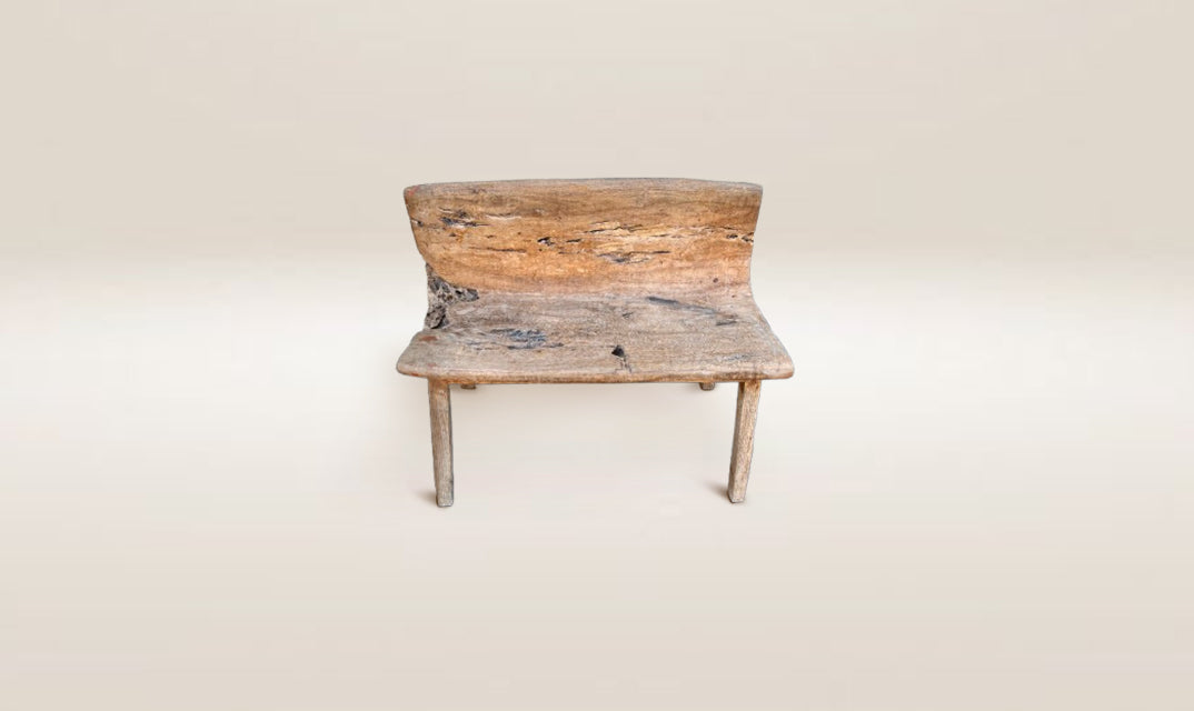 Seat and back are a single element. Carved out of a log of teak.34" L × 14" D × 28" HSeat 17" H