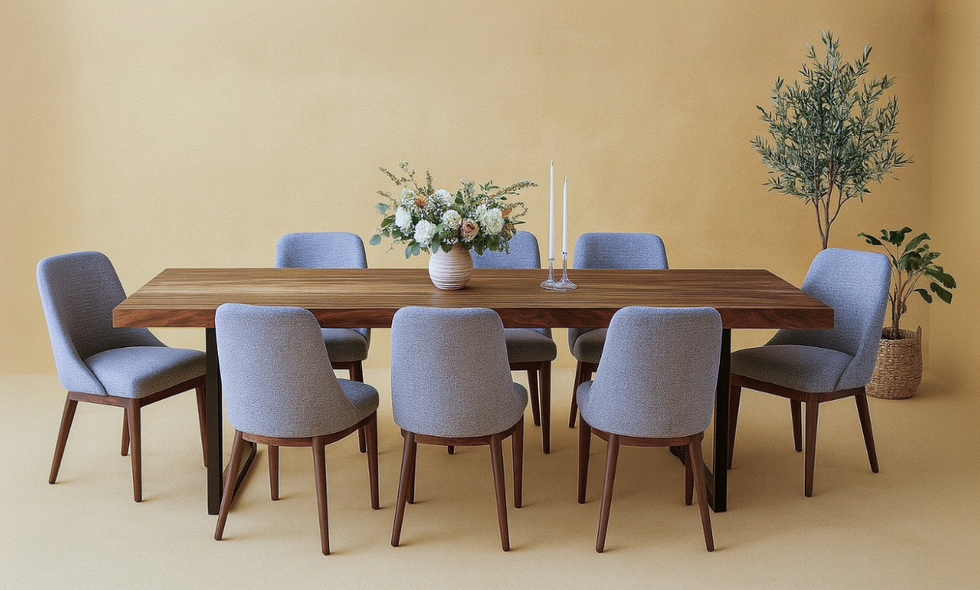 Handcrafted from a single slab of solid Acacia, this table celebrates simplicity and strength. Its clean, straight edges highlight the natural grain while the rich golden tones bring warmth to any space. Supported by minimalist steel legs, it’s a statement of modern craftsmanship and timeless design.