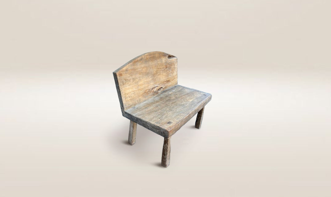 Seat and back are a single element. Carved out of a log of teak.38" L × 20.5" D × 35.5" HSeat 19" H