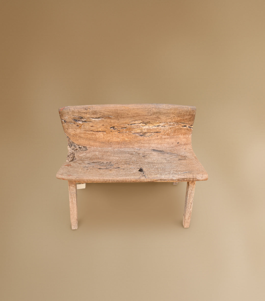 Seat and back are a single element. Carved out of a log of teak.34" L × 14" D × 28" HSeat 17" H